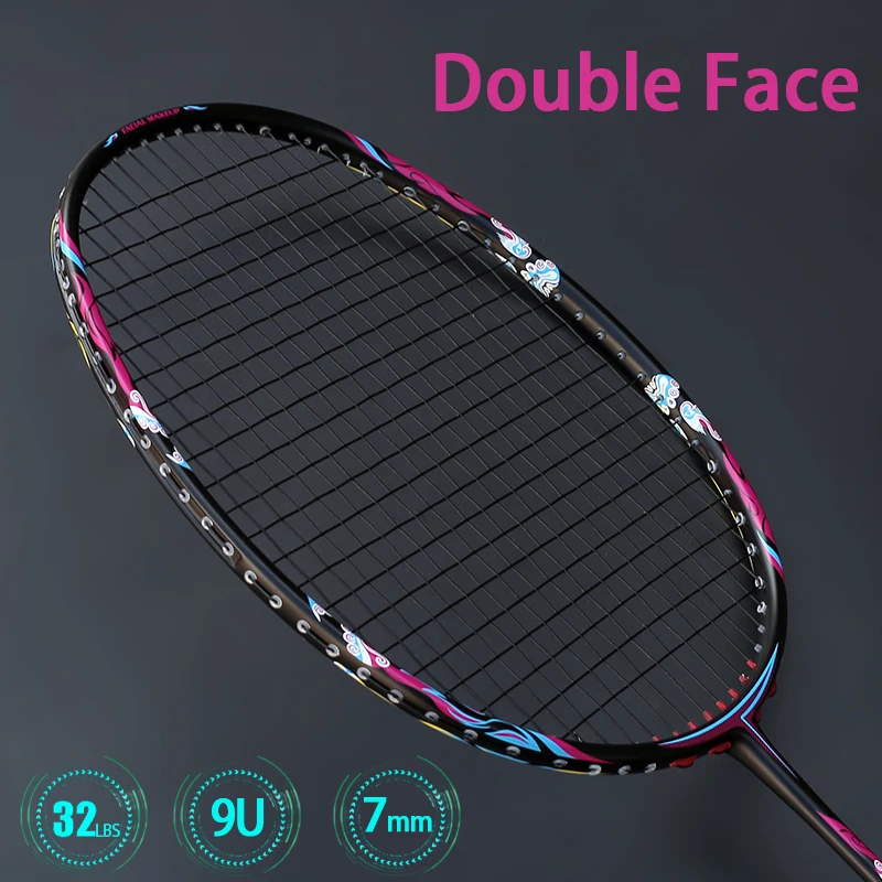 Professional Super Light 9U 57Gram Carbon Fiber Badminton Racket Strung 32LBS G5 Rackets With Strin